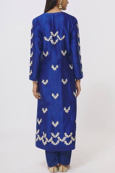 Blue Chanderi Embroidered Kurta Set