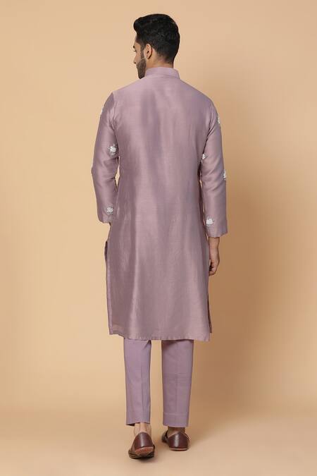 Purple chanderi silk kurta with floral embroidery made with pearls & cutdana. Paired with pant.