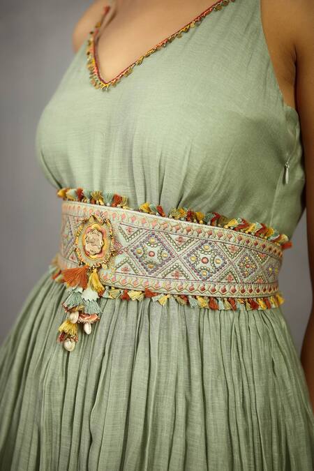 Buy_Torani_Green Chanderi Embroidered Waist Belt_at_Aza_Fashions