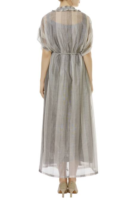 Grey & white woven striped kaftan style jacket. Comes with plain inner slip dress.