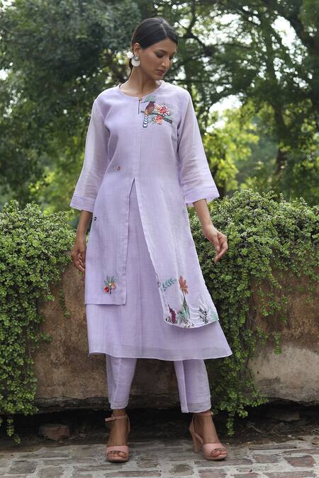 Buy_Desert Shine By Sulochana Jangir_Purple Chanderi Embroidery, Patchwork Round Neck Kurta And Pant Set_Online_at_Aza_Fashions