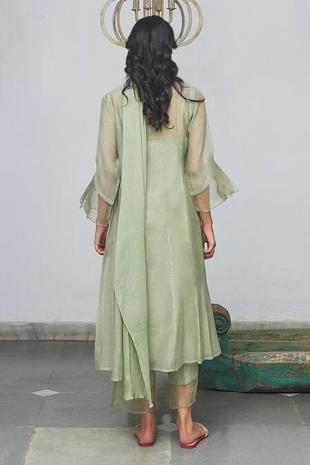 Buy_Begum_Green Kurta Chanderi Pant And Inner Slip Cotton Round Set _at_Aza_Fashions