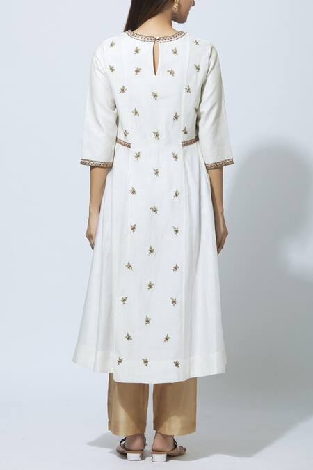 Buy_Virtuoso By Mekha And Anurag_White Chanderi Round Kurta With Dupatta_Online_at_Aza_Fashions