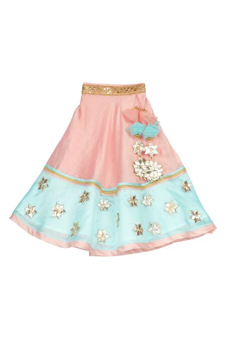 Blouse:Lace detailsLehenga: Gota patti work , Lehenga:Tassel details,, Elasticated waist band , Frilled dupatta , Comes with can-can