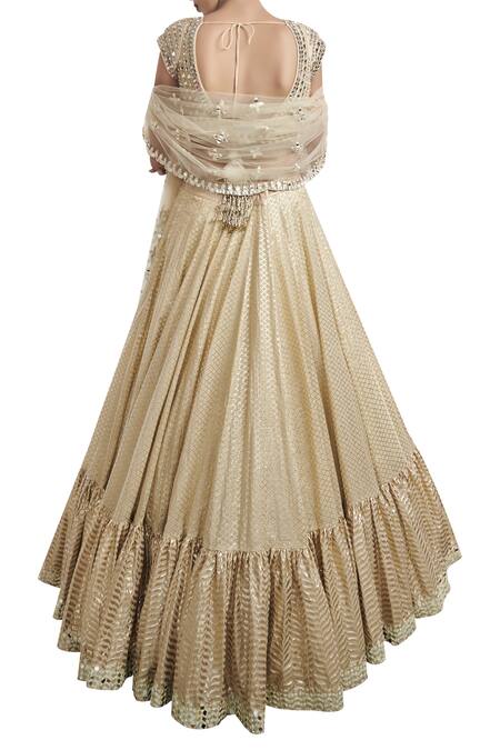 Buy_Abhinav Mishra_Beige Raw Silk Chanderi Lehenga Set_Online_at_Aza_Fashions