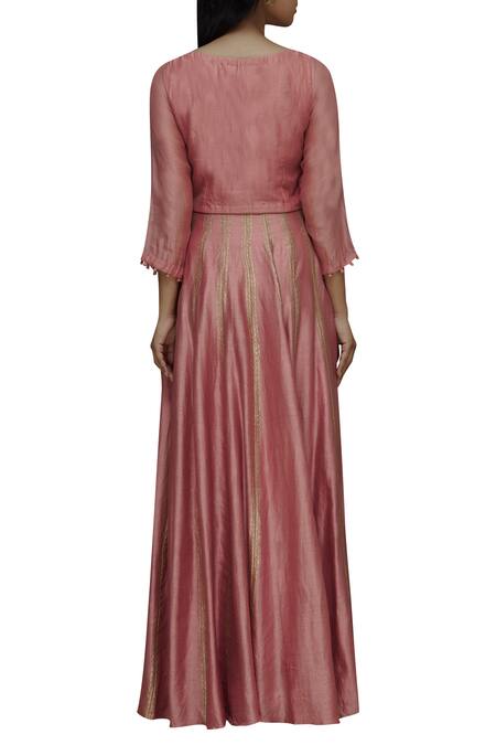 Buy_Priyam Narayan_Pink Handloom Chanderi Round Lehenga Set_Online_at_Aza_Fashions
