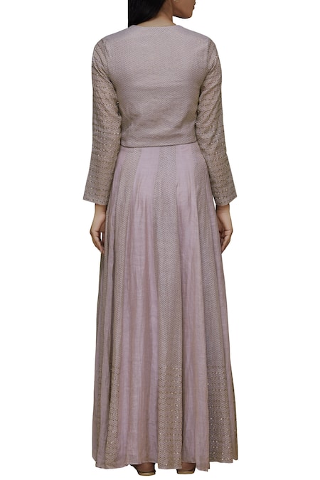 Lavender Chanderi block printed kalidar lehenga & blouse. Comes with printed dupatta.