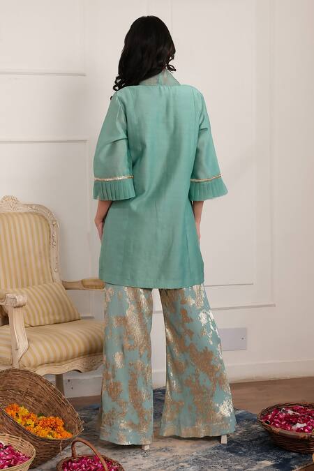 Buy_Pairaahan_Green Chanderi, Organza Sequins, Crystals Pearl Embellished Kurta With Pant_Online_at_Aza_Fashions
