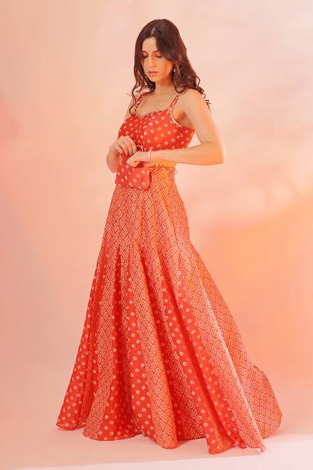 Buy_Mehak Talreja Couturre_Orange Chanderi Sweetheart Neck Printed Jumpsuit_Online_at_Aza_Fashions