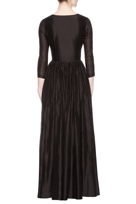 Buy_Surendri_Black Chanderi Silk Anarkali With Dupatta_Online_at_Aza_Fashions
