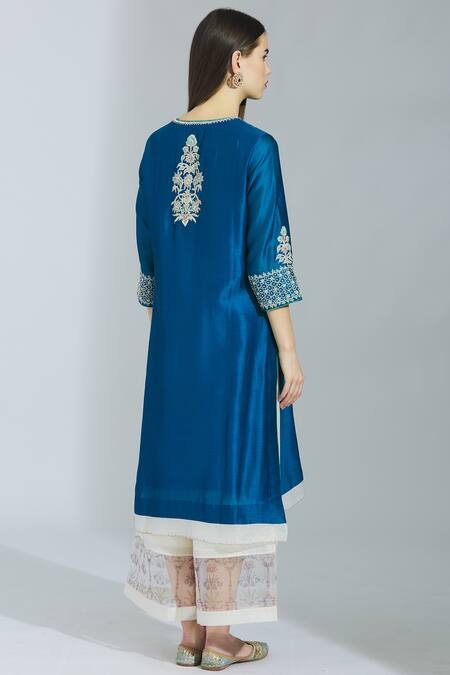 Blue Chanderi Silk Round Kurta Palazzo Set