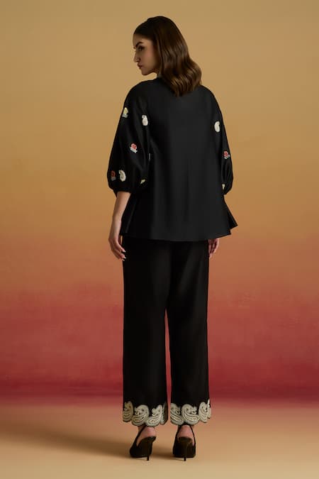 Black Chanderi Embroidery Collared Contrast Paisley Shirt