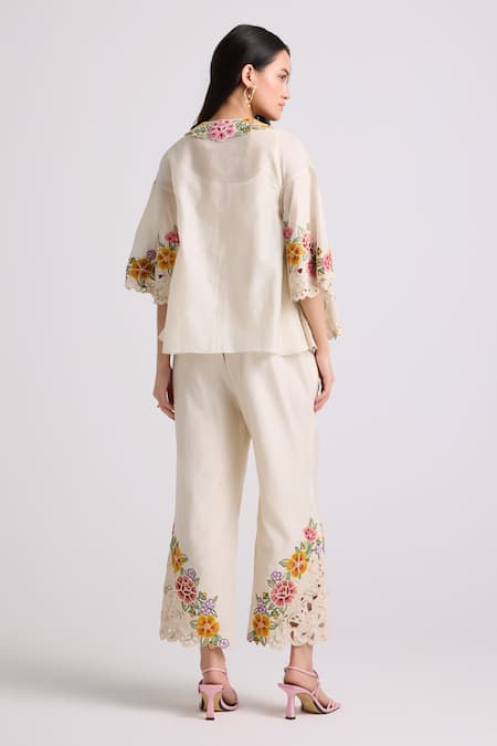 Ivory Chanderi, Cotton Embroidery, Beads Floral Cutwork Pant