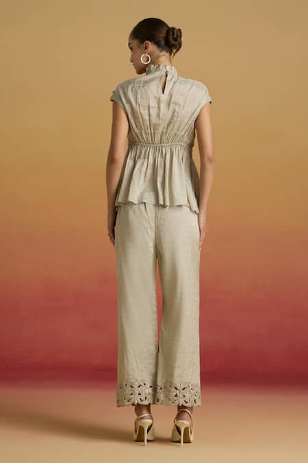 Silver Tissue Crystals High Neck Beaded Smocked Top