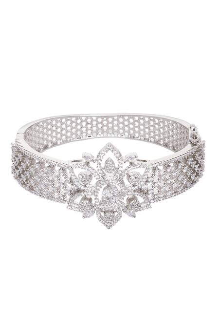 Intricate diamond-studded floral design, Broad band with cut-out detailing