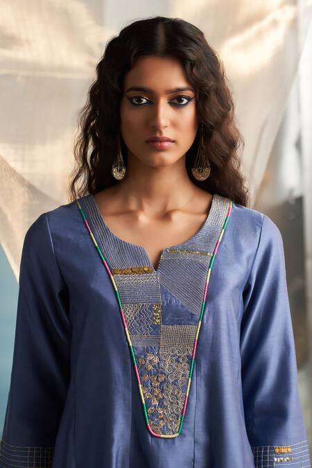 Blue Kurta And Dupatta Chanderi Embroidered Zari Bodice Panelled Salwar Set