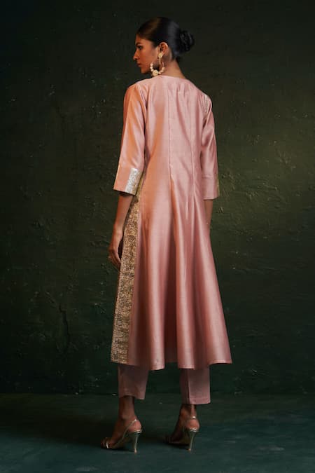 Pink Chanderi, , Satin Gota Patti Crinkled Paneled Anarkali Set