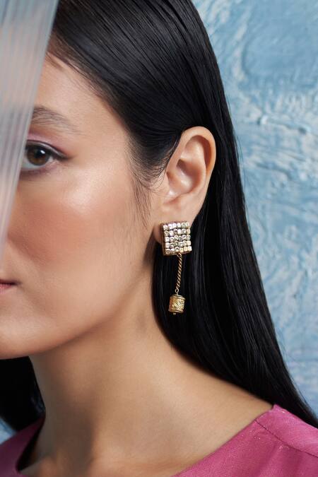 Gold Plated Stones Embellished Drop Earrings