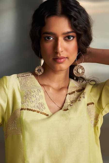 Yellow Kurta And Dupatta Chanderi Embroidered Zari Egyptian Pattern Pant Set