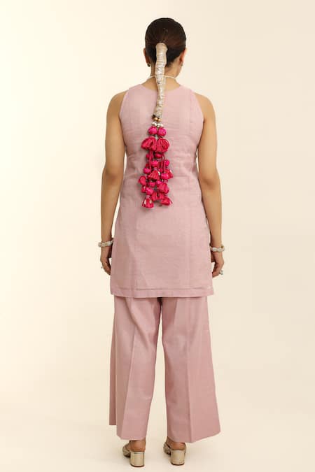 Blush Tissue, Chanderi, Organza Embroidery Round Neck Pink Kurta Set