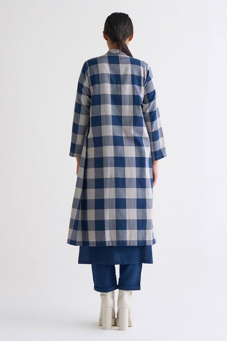 Buy_Three_Blue Melange Checkered Lapel Pattern Overlay_Online_at_Aza_Fashions