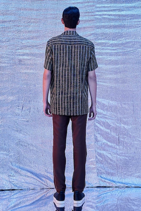 Blue Cotton Poplin Print Checkered Resort Shirt