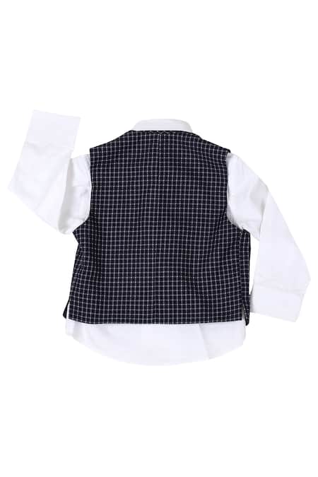 Buy_Partykles_Blue Terryrayon Checkered Waistcoat And Pant Set _Online_at_Aza_Fashions