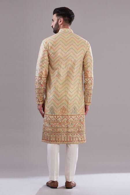 Buy_Kasbah_Pink Georgette, Cotton Embroidery Chevron Pattern Thread Work Kurta_at_Aza_Fashions