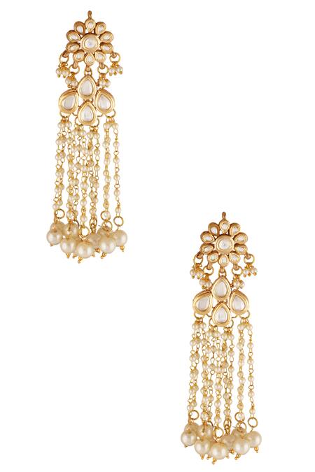 Gold plated dangler earrings featuring a floral carved top with cluster bead drops