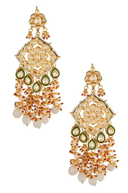 Buy_ChhavI'S Jewels_Gold Plated Floral And Leaf Carved Dangler Earrings _Online_at_Aza_Fashions