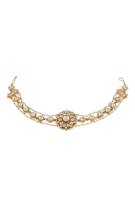 Gold plated sheeshpatti featuring a floral motif center embellished with kundans