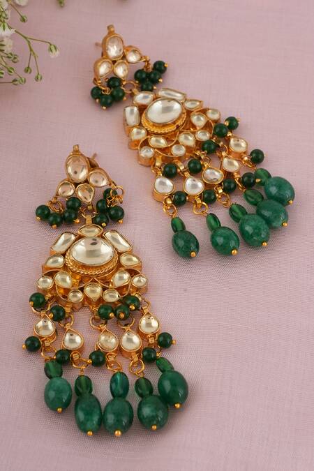 Buy_ChhavI'S Jewels_Green Crystals, Stones Kundan And Embellished Earrings_Online_at_Aza_Fashions