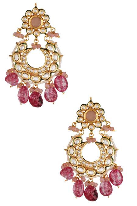 Buy_ChhavI'S Jewels_Pink Pearls, Beads Kundan Chandbalis_Online_at_Aza_Fashions