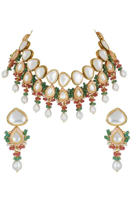 Buy_ChhavI'S Jewels_Gold Plated Pearls, Beads, Stones Kundan Choker Set_Online_at_Aza_Fashions