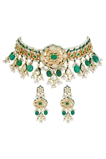 Buy_ChhavI'S Jewels_Gold Plated Stones, Beads Kundan Choker Set _Online_at_Aza_Fashions