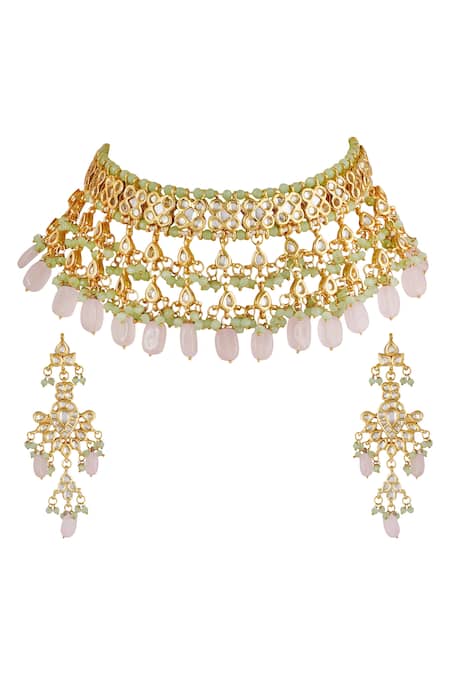 Buy_ChhavI'S Jewels_Green Pearls, Beads, Diamonds Kundan Choker Set _Online_at_Aza_Fashions