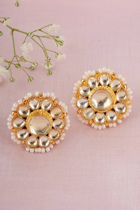Gold Plated Pearls, Diamonds Kundan Embellished Stud Earrings