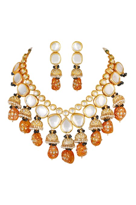 Buy_ChhavI'S Jewels_Gold Plated Stones, Beads Kundan Jhumka Drop Choker Set_Online_at_Aza_Fashions