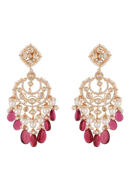 Buy_ChhavI'S Jewels_Red Pearls Stone And Kundan Embellished Chandbalis_Online_at_Aza_Fashions