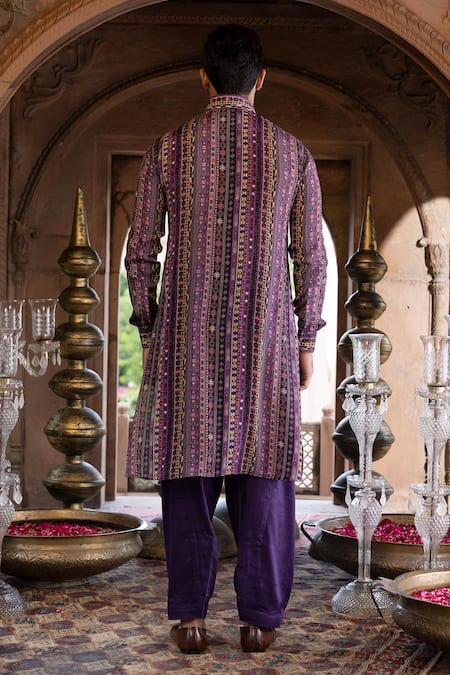 Purple kurta with geometric print & front buttons. Paired with salwar.