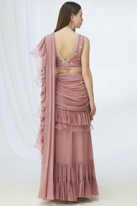 Mauve saree with ruffle & sequin embellished border. Comes with embellished blouse.