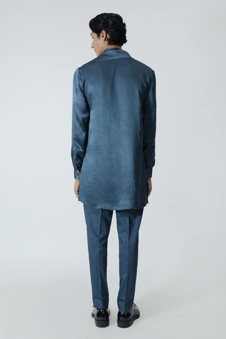 Midnight blue kurta featuring a cowl neck and full sleeves. Paired with straight cut pant in Giza cotton.
