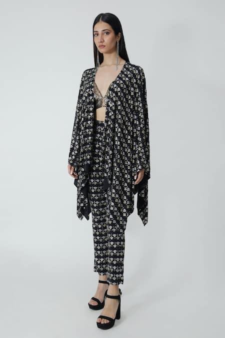 Buy_Chhaya Mehrotra_Black Brocade Embroidery Sweetheart Neck Floral Bralette _at_Aza_Fashions