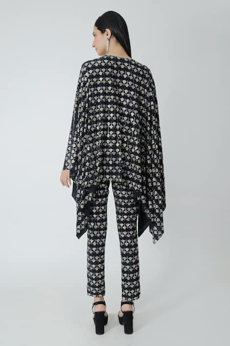 Buy_Chhaya Mehrotra_Black Brocade, Silk Rhinestones V-neck Embellished Cape Pant Set _at_Aza_Fashions