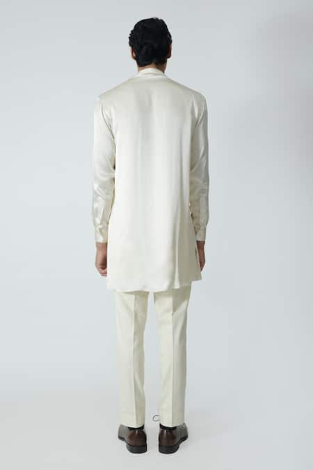 Ivory kurta featuring a cowl neck design and full sleeves. Paired with straight pants made from Giza cotton.