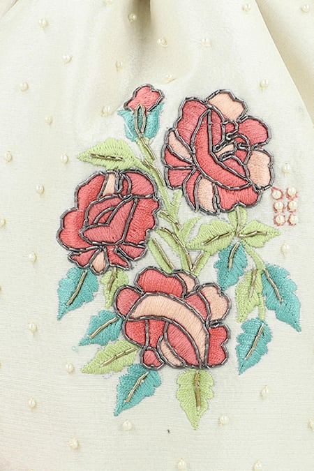 Buy_Chhaya Mehrotra_White Embroidery, Beads Floral Potli Bag _at_Aza_Fashions