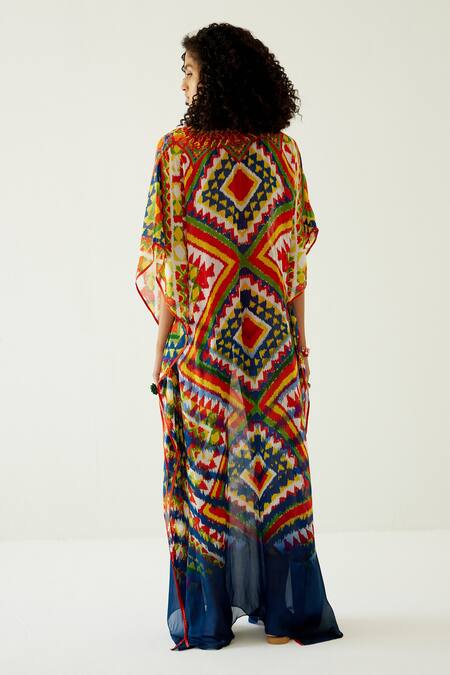 Buy_Payal Jain_Yellow Chiffon Geometric Patterns Notched Long Kaftan_Online_at_Aza_Fashions