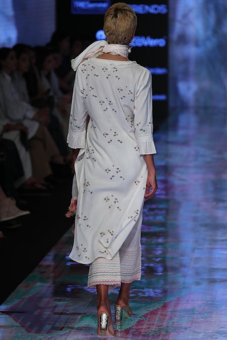Buy_House Of Kotwara_White Cambric Peter Pan Collar Chikankari Kurta Set _at_Aza_Fashions