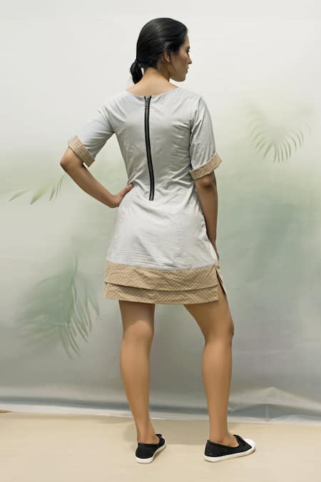 Grey Cotton Poplin Round Applique Shift Dress