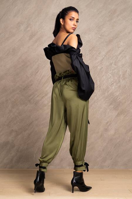 Buy_Chillosophy_Green Japanese Satin High Waist Pants_Online_at_Aza_Fashions